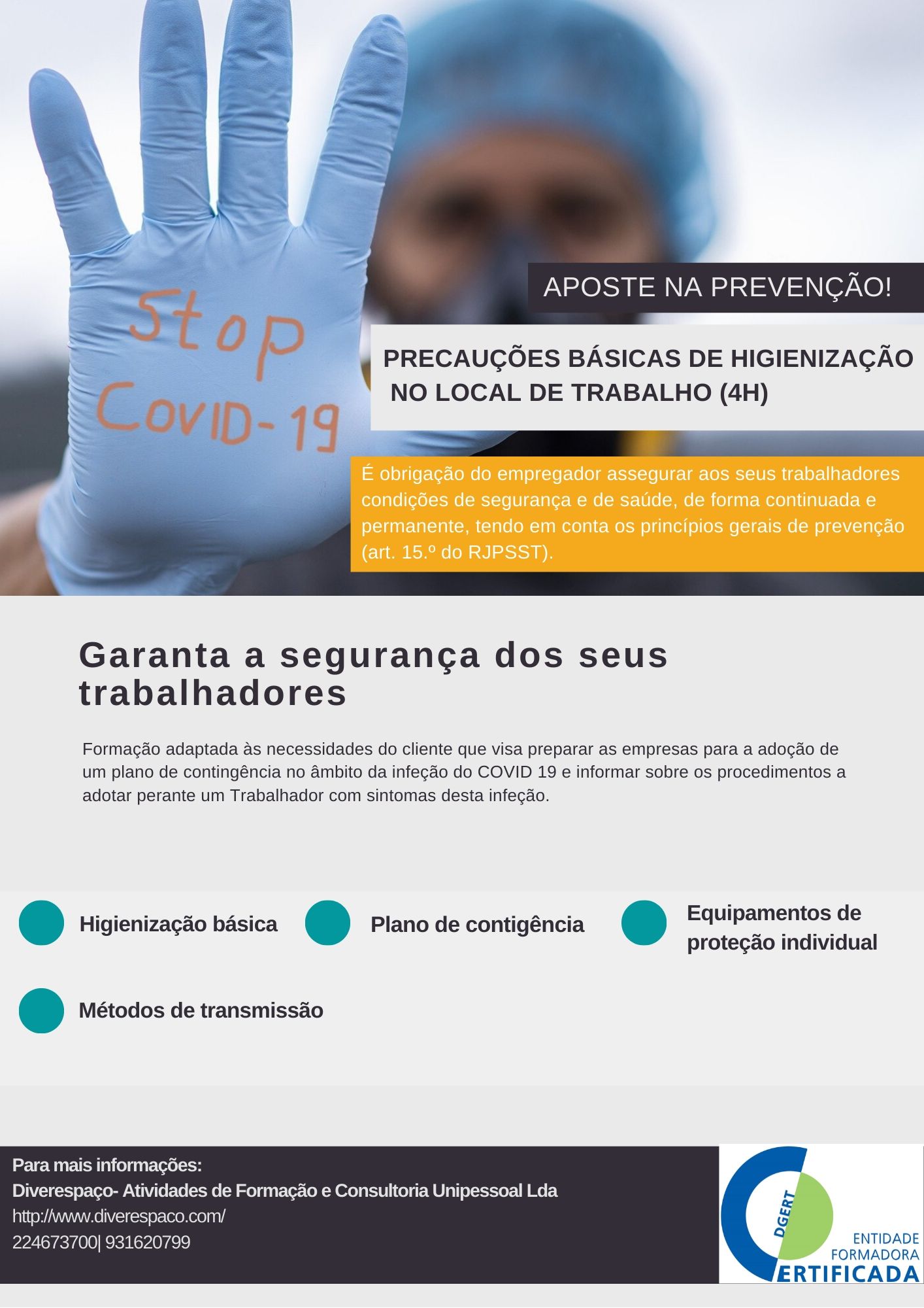 O objetivo desta formação é informar e sensibilizar as empresas dos riscos assim como, dos cuidados a ter no local de trabalho.