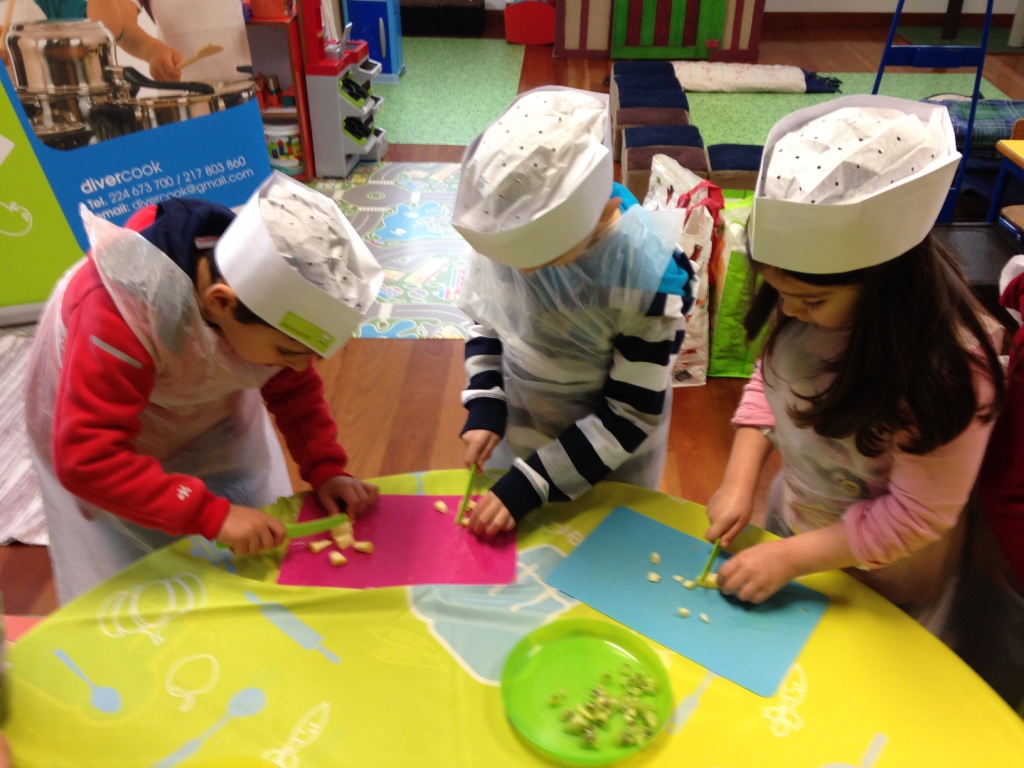 A) Sessões temáticas de cozinha, pastelaria e padaria para crianças dos 3 aos 16 anos;