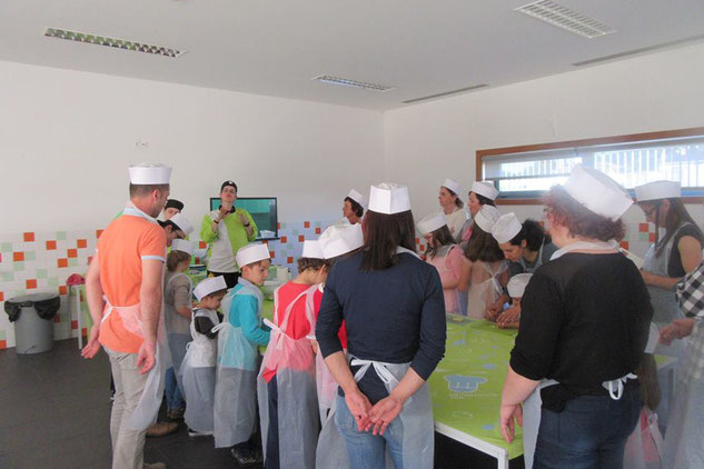 B) Workshops de cozinha, pastelaria e padaria para a família;
